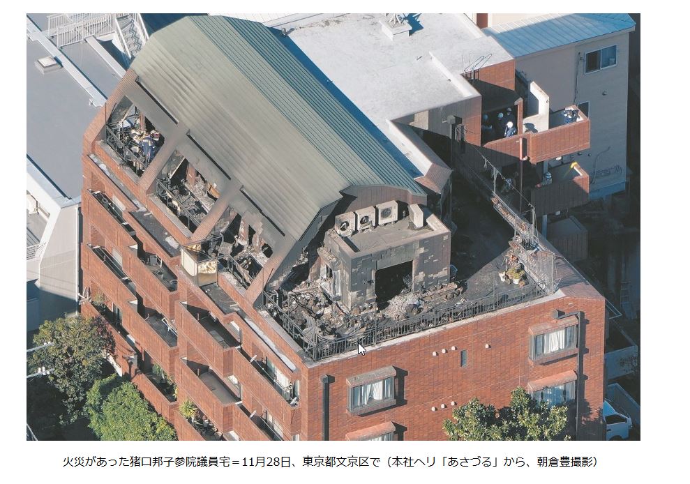 さらに不思議なことを思い出す。というのは2024年11月27日に猪口邦子さんの家が全焼したことがある。