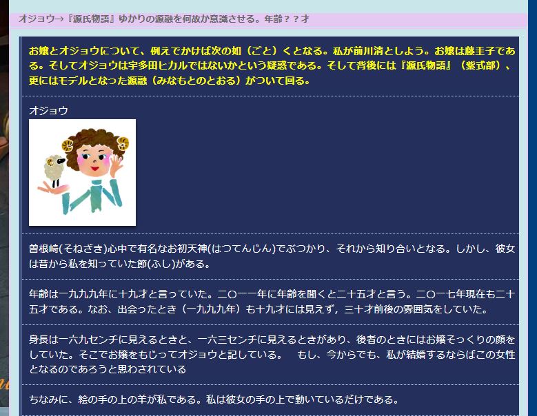結論からいえば、どうも女性とか部落問題は上記の人物連動説や光源氏をもじった『新・源氏物語』ではなく、私とは全く無縁の話としか分析できない。